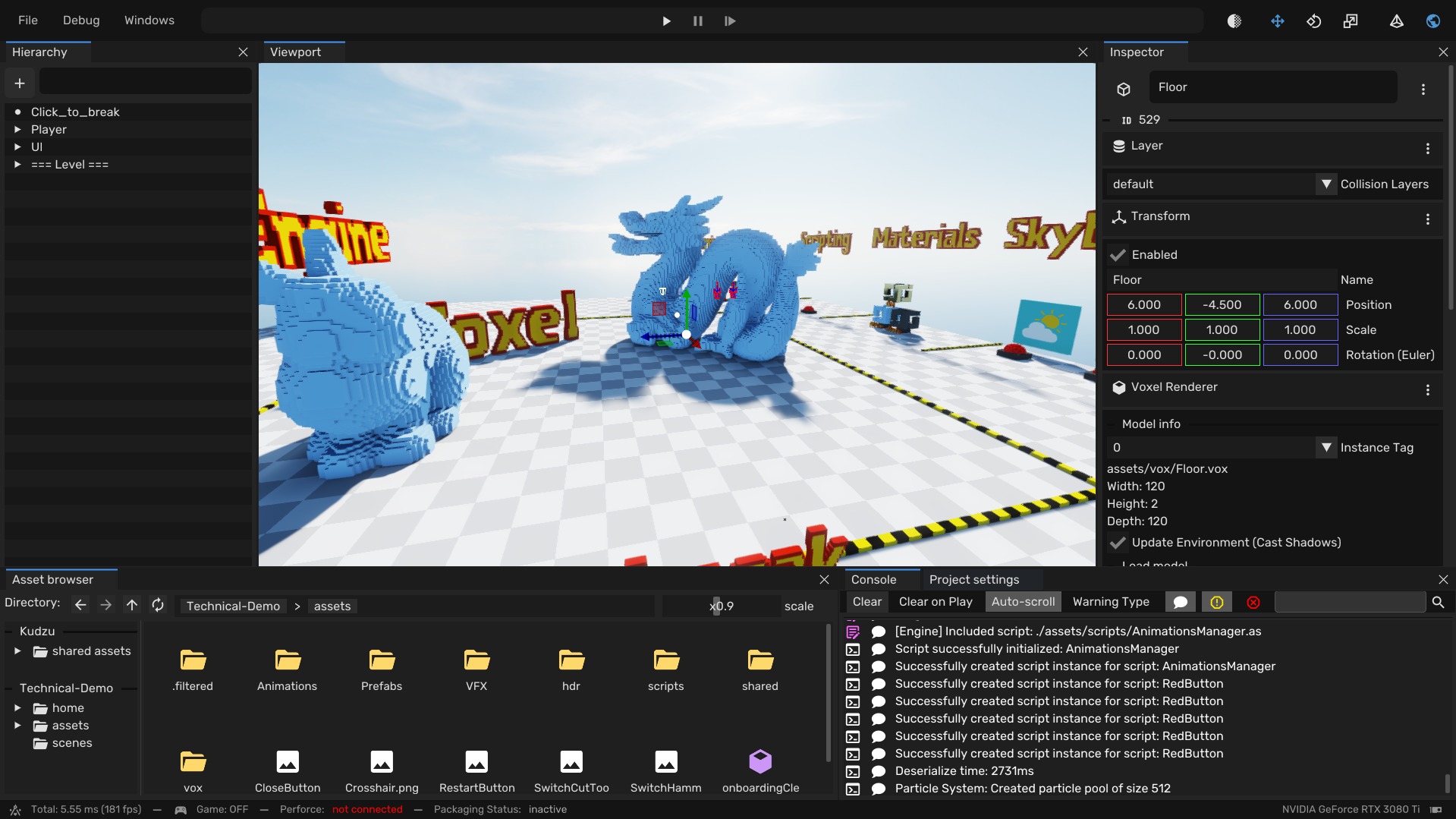 The Kudzu Engine is a cross-platform, voxel-based game engine developed by a team of students at Breda University of Applied Sciences. We had a total of 8 weeks to develop the engine and 8 more weeks to make a game. These games could be played on the PlayStation 5 and PC.